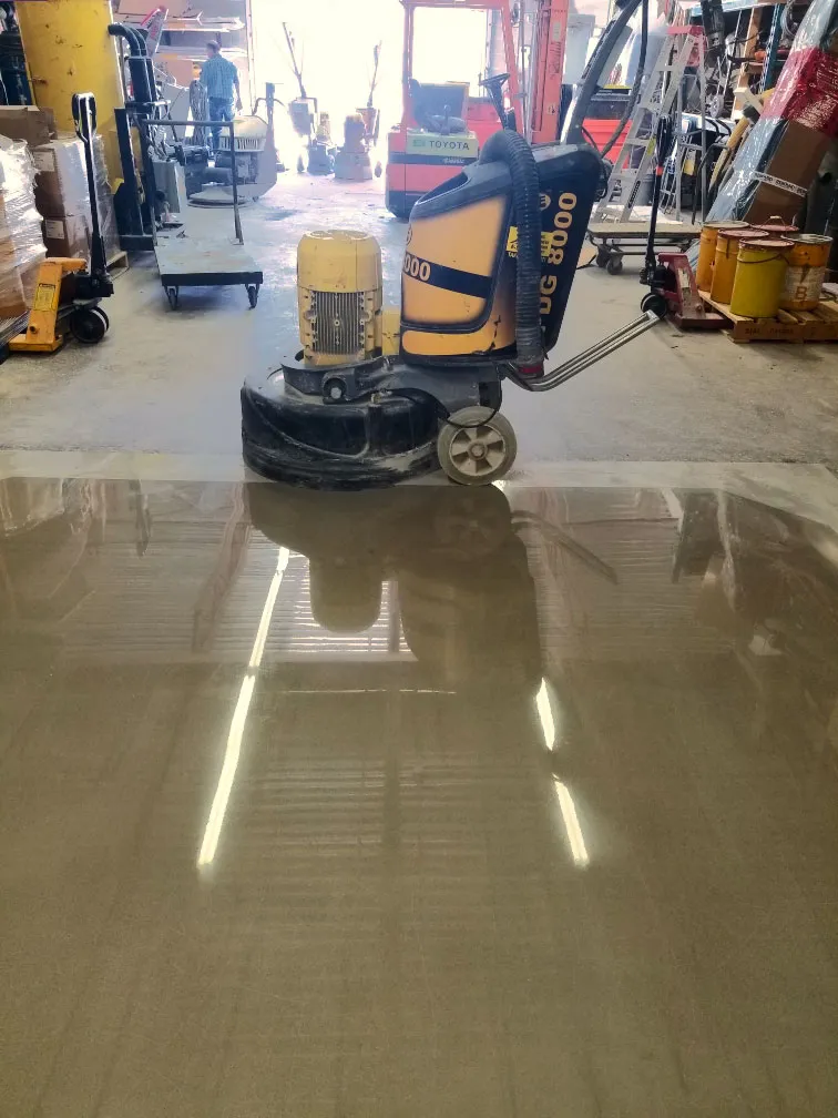 Concrete floor diamond grinding is a concrete restoration technique used to create smooth, durable floors in homes, commercial buildings, factories, garages, and showrooms. A concrete grinding machine uses diamond segments on large rotating heads that grind away at rough, imperfect floors to create a truly fresh slate for your new layer of epoxy without the use of stripping chemicals. A hygienic option, concrete diamond grinding uses a built-in concrete vacuum system that eliminates concrete dust particles from the air.
